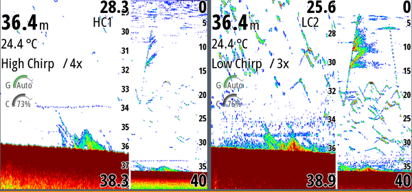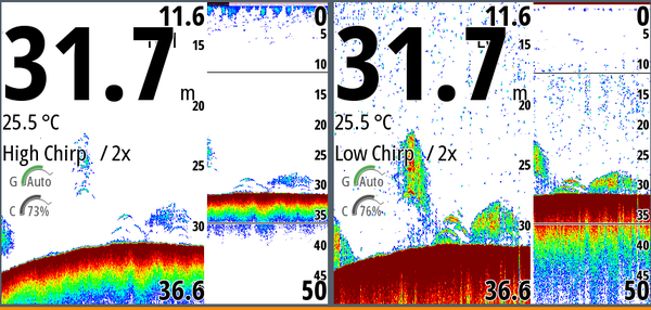 Interpreting the fish finder is an art that improves with experience. Isolated squid on the bottom appear as “dashes” or “light and fairly faint marks,” usually horizontal when the boat is moving very slowly. At higher speeds, they show up as “dots.” The real challenge appears when the area is full of baitfish: distinguishing squid inside dense schools requires eye training and practice. The advice is always to make a drop when in doubt; with time and careful study of screenshots, you will become increasingly skilled in recognizing them.