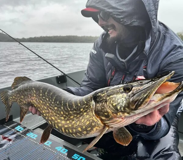 Davanti a me, sotto la pioggia battente, c’è un magnifico luccio irlandese: massiccio, selvatico, perfetto.