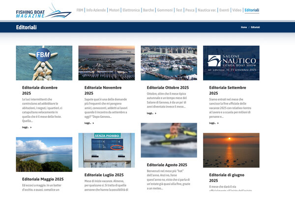 Su FBM vengono proposti articoli tecnici su argomenti di comune interesse, editoriali con riflessioni e focus sui vari momenti dell’economia nautica e della pesca, articoli che riguardano prodotti, interviste, su eventi fieristici e video. FBM infatti ha un suo canale YouTube in cui pubblica i video dedicati a test, installazioni, interviste a personaggi di spicco della cantieristica. I video vengono poi riproposti sul portale nell’apposita sessione Video e in Hone Page.